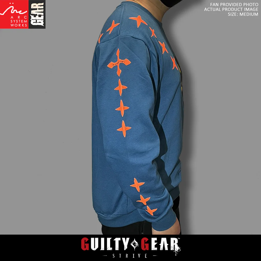 Faithfully represent the gunslinging broken Messiah with this official Happy Chaos crewneck sweatshirt from Guilty Gear -Strive-!